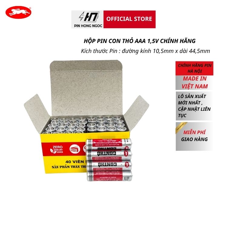 Pin Hồng Ngọc là đại lý uy tín, chuyên cung cấp pin Con Thỏ giá sỉ, xuất hóa đơn VAT đầy đủ cho doanh nghiệp, đại lý, trường học và cá nhân trên toàn quốc. Đảm bảo chất lượng chính hãng, giá cạnh tranh, chứng từ đầy đủ, hỗ trợ giao hàng tận nơi nhanh chóng.