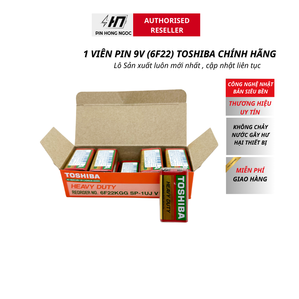 Hộp 10 Viên Pin 9V Toshiba 6F22 Chính Hãng Dung Lượng Cao