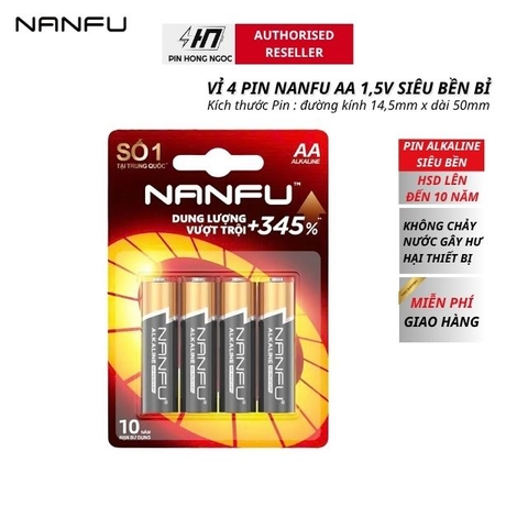 Pin AA Nanfu là dòng pin kiềm (Alkaline) nổi tiếng đến từ Trung Quốc, được ưa chuộng nhờ hiệu năng mạnh mẽ, độ bền vượt trội, dùng tốt cho điều khiển, đồ chơi, chuột không dây, micro, máy ảnh, đồng hồ...
