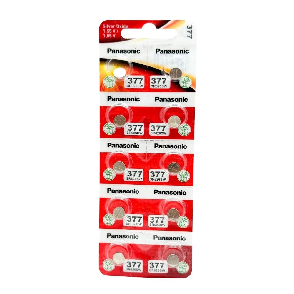 Pin Panasonic SR626SW (377) 1,55V vỉ 10 viên là dòng pin cúc áo Silver Oxide chuyên dùng cho đồng hồ đeo tay, thiết bị điện tử mini và các thiết bị yêu cầu nguồn điện ổn định. Sản phẩm có ưu điểm điện áp đều, độ bền tốt, dễ thay thế theo mã pin 377, phù hợp cho cả người dùng cá nhân, thợ sửa đồng hồ và cửa hàng phụ kiện.