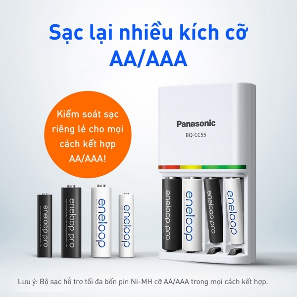 Sạc được cả pin AA và AAA Ni-MH của Eneloop và các thương hiệu khác.